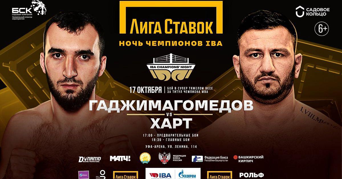 Чемпион мира по версии WBA в бриджервейте россиянин Муслим Гаджимагомедов (4-0, КО 3) 17 октября в Уфе проведёт первую защиту пояса в 12-раундовом поединке с немцем Леоном Хартом (22-5-1, КО 13) на турнире «Лига Ставок. Ночь чемпионов IBA», который пройдёт в рамках форума «Россия – спортивная держава».