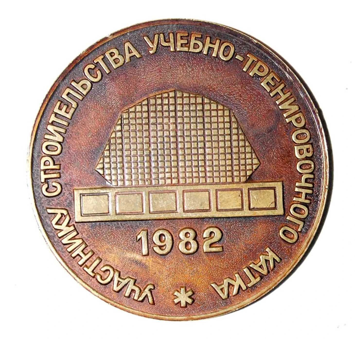 1982 год. Одна из сторон памятного жетона, вручавшегося участникам строительства ташкентского учебно-тренировочного катка