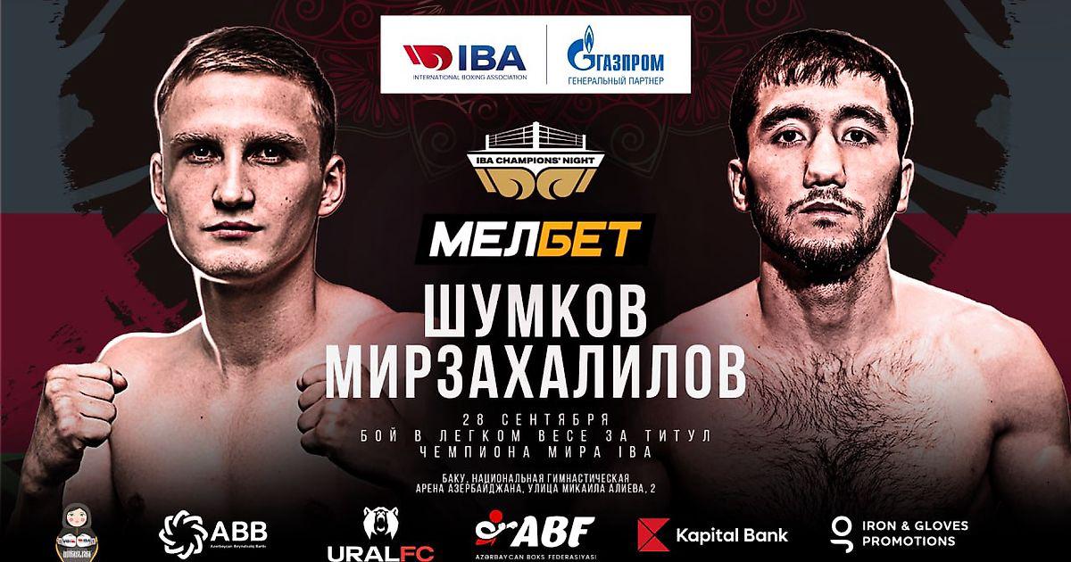 Чемпион Европы-2024, бронзовый призёр чемпионата мира-2023, трёхкратный чемпион России Всеволод Шумков (1-0, КО 1) из команды RCC Boxing Promotions 28 сентября в Баку (Азербайджан) проведёт бой за титул IBA в весе до 57 кг против чемпиона мира и Азии 2019 года Миразизбека Мирзахалилова (4-0, КО 3) из Узбекистана. Этот 10-раундовый поединок возглавит очередной грандиозный турнир из серии «Ночь чемпионов IBA».