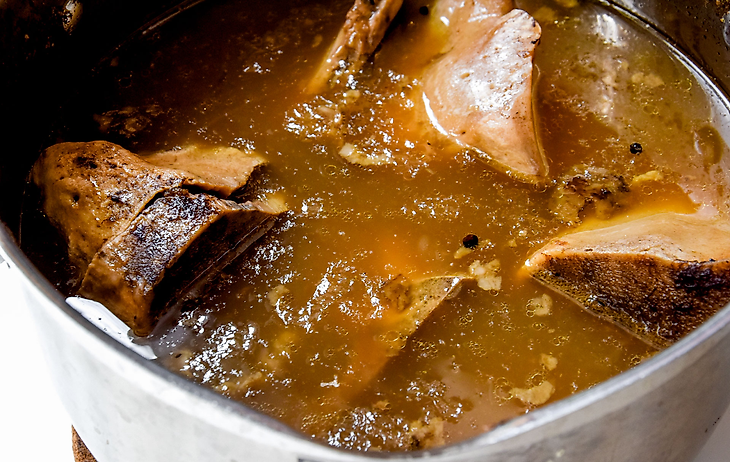 - Первый принцип – медленное приготовление. Чем дольше вы будете готовить блюдо, тем больше коллагена вы сможете извлечь из костей и соединительных тканей. Запекайте мясо, тушите его несколько часов – это позволит извлечь из продукта максимум полезных веществ. Это касается и бульонов – не зря их варят по несколько часов на минимальном огне.