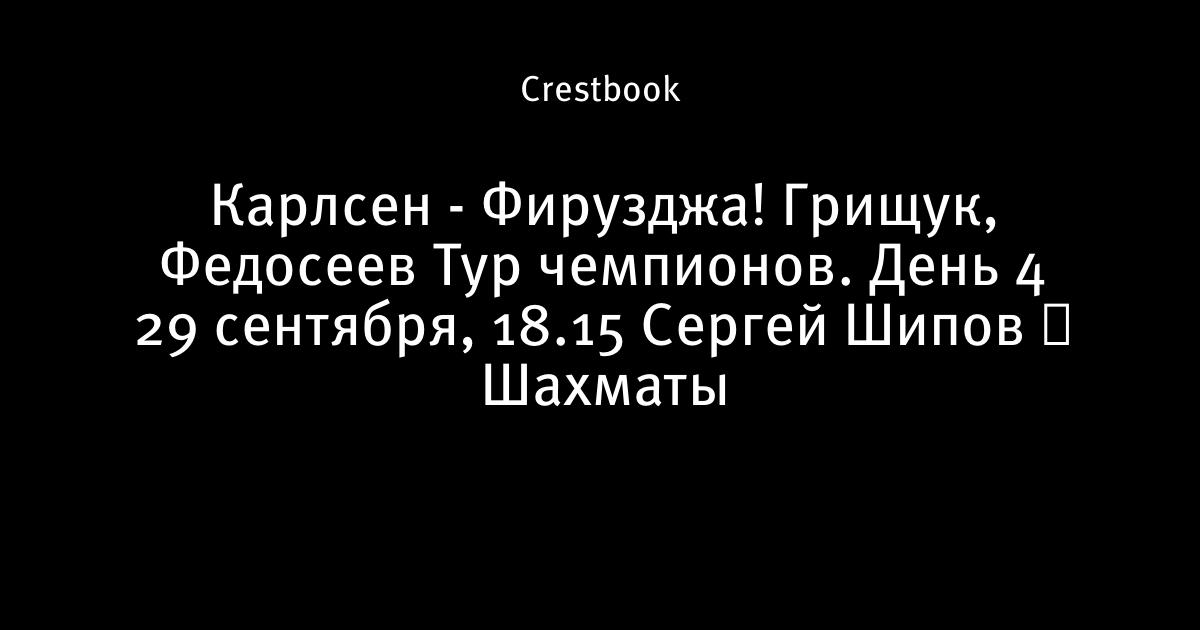 Карлсен - Фирузджа! Грищук, Федосеев 🏆 Тур чемпионов. День 4 ⏰ 29 сентября, 18.15 🎤 Сергей Шипов ♕ Шахматы