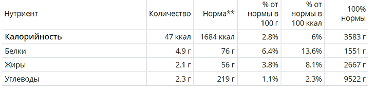 Из таблицы ниже можно узнать калорийность супа на 100 г.