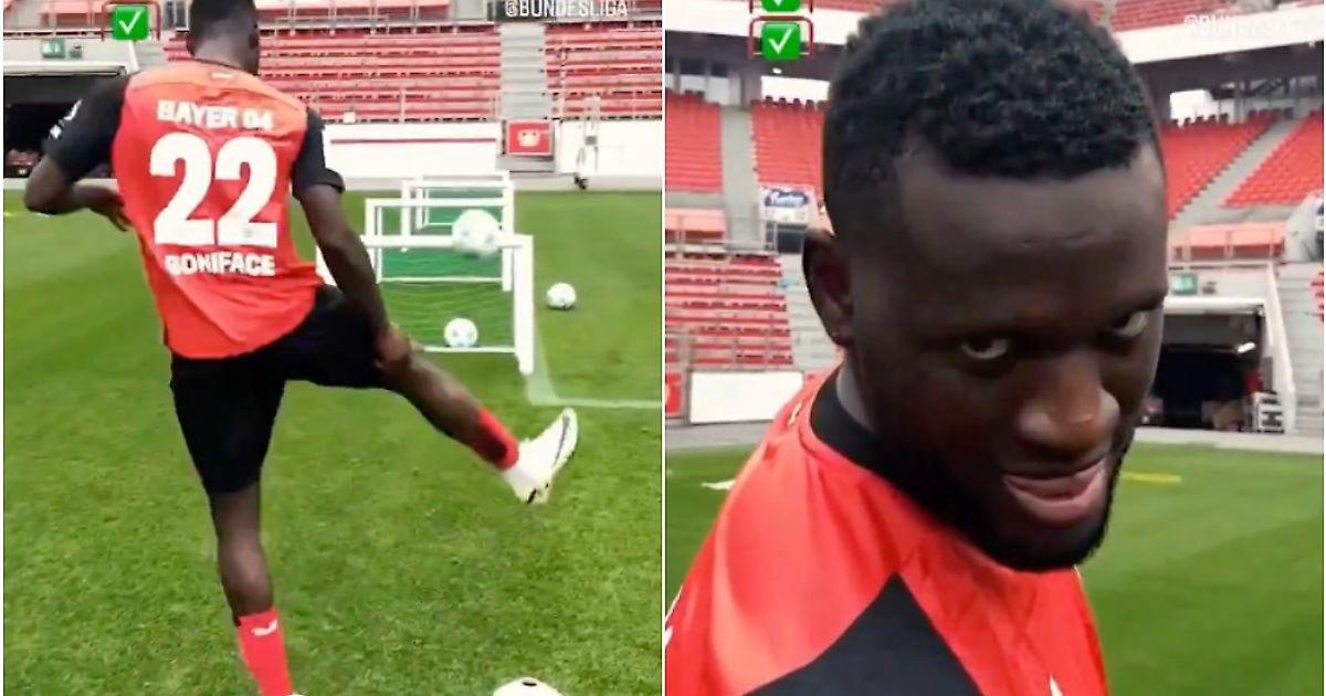 Нападающий «Байера» Виктор Бонифасе удивил фанатов потрясающими навыками подсечки мяча.