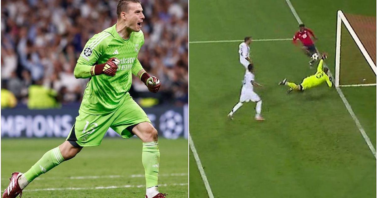 Посмотрите, что сделал Лунин в матче Лиги чемпионов с «Лиллем».