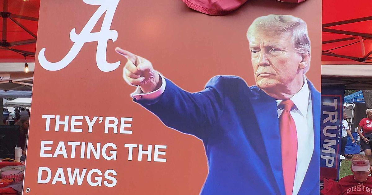 И вот главный матч дня - Джорджия против Алабамы, Джален Милро против Карсона Бека. И Кирби Смарт против, постойте, против Кален ДеБоира, кого? Ник Сабан завершил грандиозную карьеру и Алабама назначила рулевого Вашингтона новым тренером. И вот, огромная полностью заполненная арена вместе с бывшим президентом Дональдом Трампом приготовилась смотреть битву второй и четвёртой команд рейтинга.