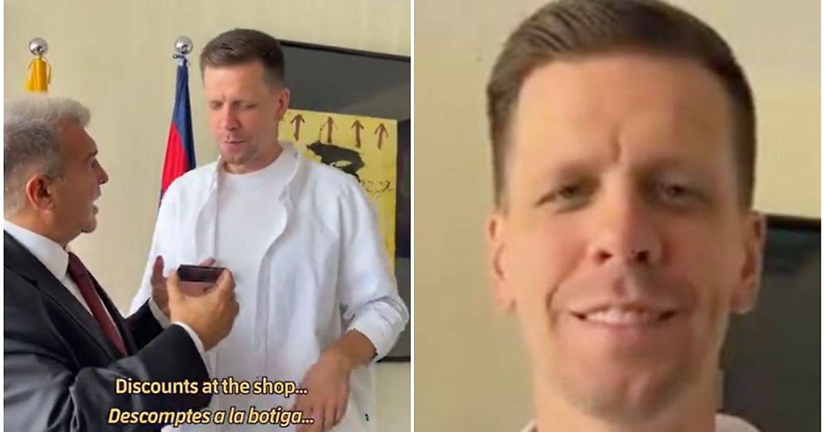 😳 «Куда я попал?» Лапорта вручил Шченсны дисконт на 20% в клубном магазине «Барсы». Его лицо может стать легендарным мемом 😬