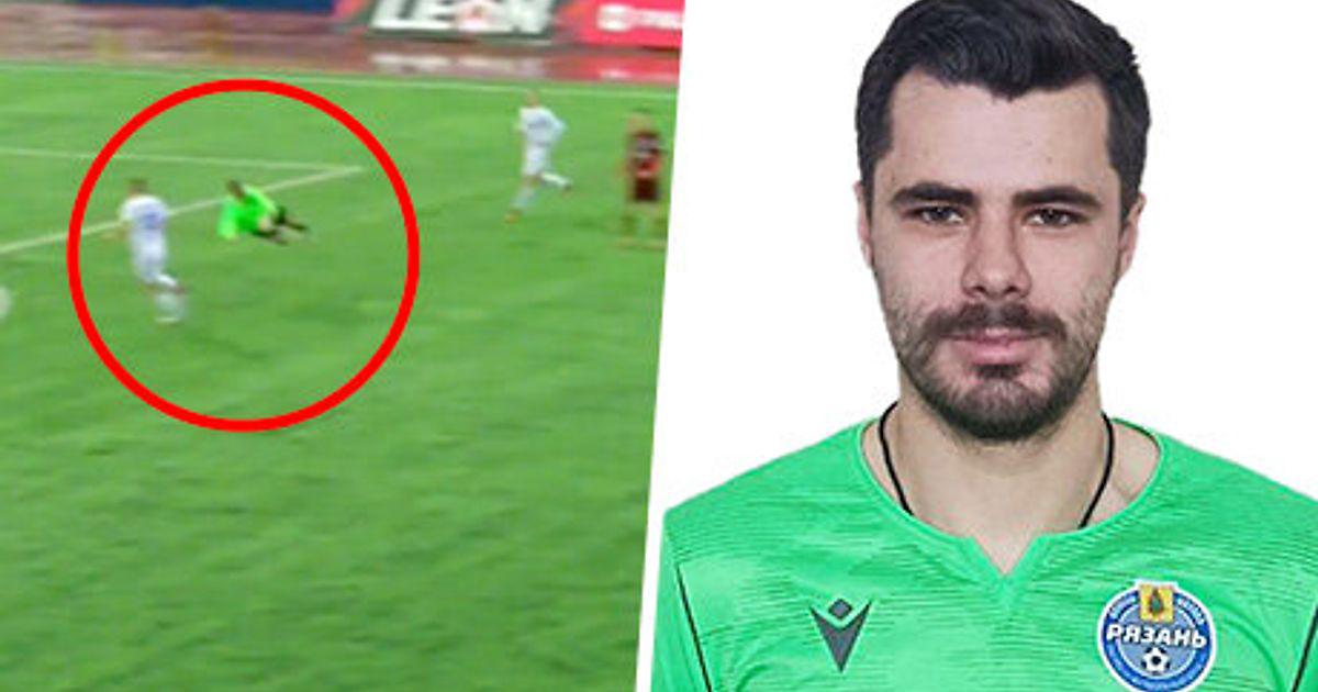 В конце матча вратарь рязанцев Никита Репин выбежал из штрафной на перехват, но ошибся в передаче. Руки уже помочь не могли – пришлось выручать головой!