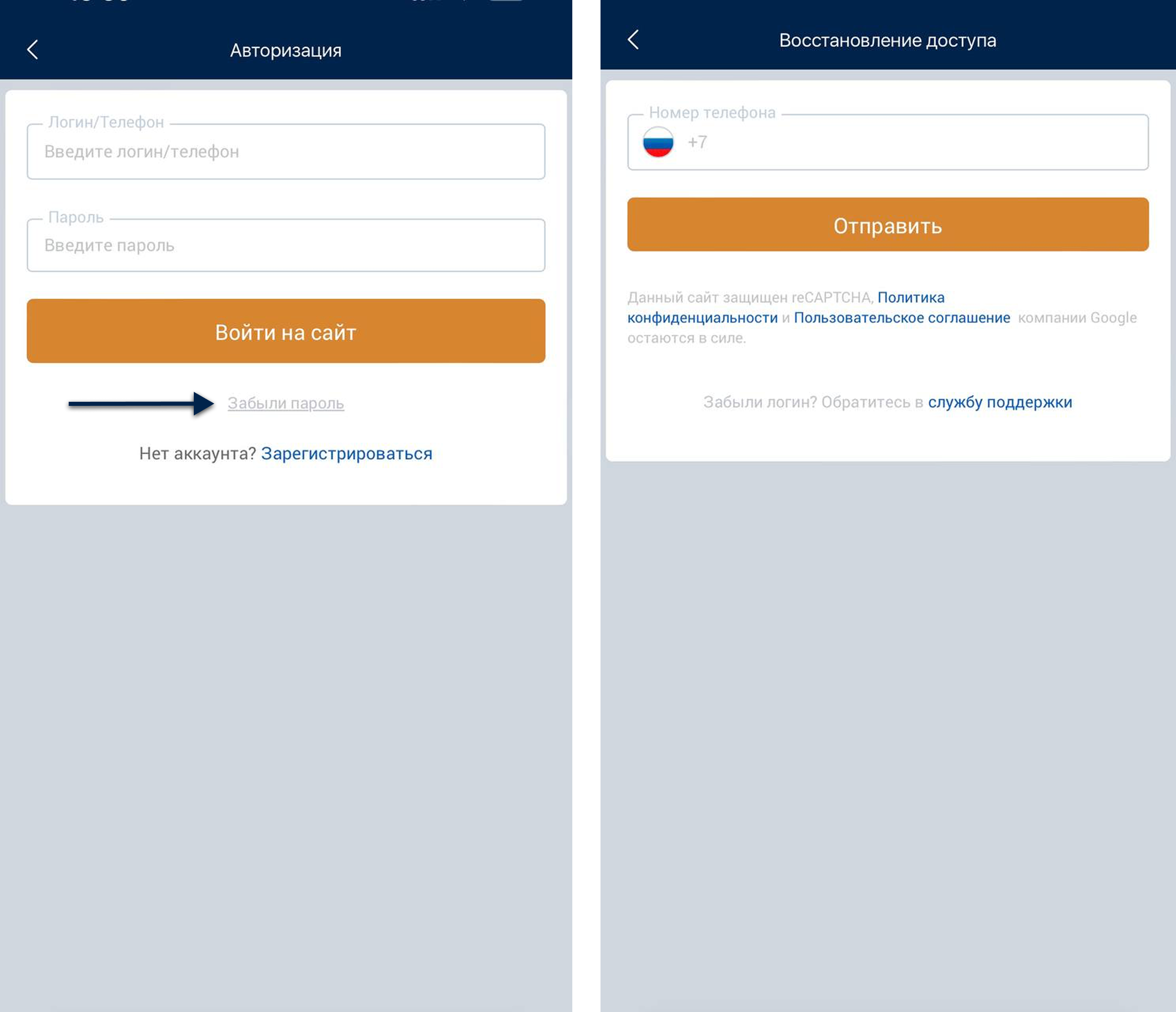 Ответ: В мобильном приложении «Зенит» перейдите к разделу входа, выберите «Забыли пароль», введите логин и номер телефона. Получите временный пароль по SMS и используйте его для входа и установки нового пароля.