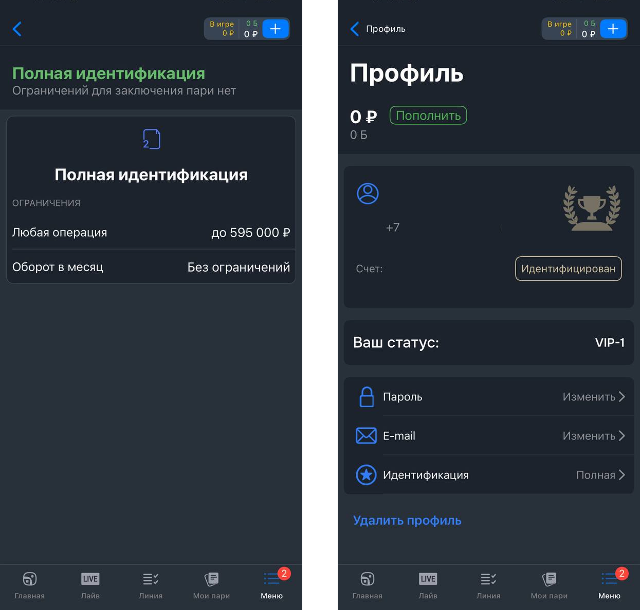 Букмекерская контора предлагает два типа идентификации: упрощенную и полную.