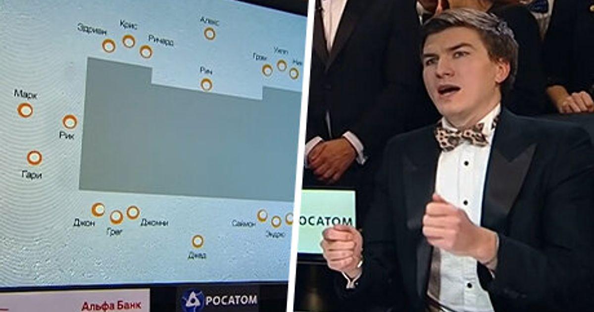 В начале игры команде выпал вопрос из Нижнего Новгорода: «Какое действо иллюстрирует схема, которую вы видите? И что мы от вас скрыли?»