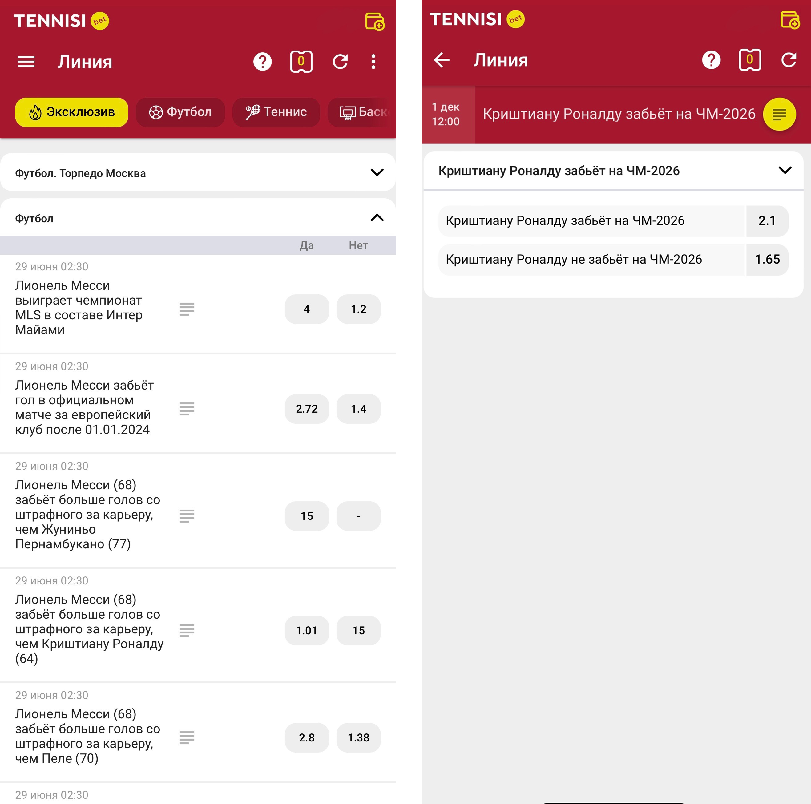 - Выберите теннисное событие, на которое хотите сделать ставку.