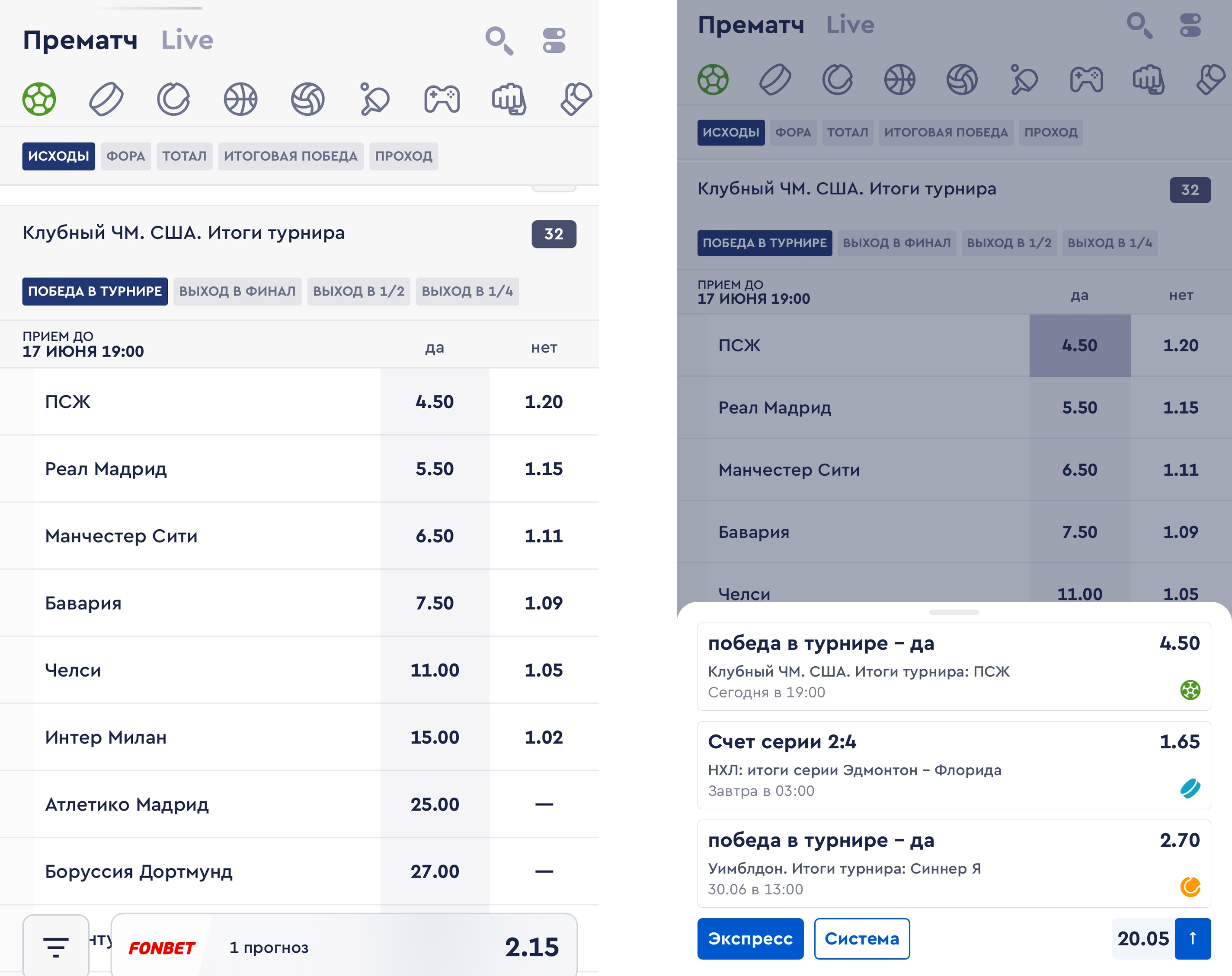 Процесс заключения лайв-пари в БК очень простой и интуитивно понятный: