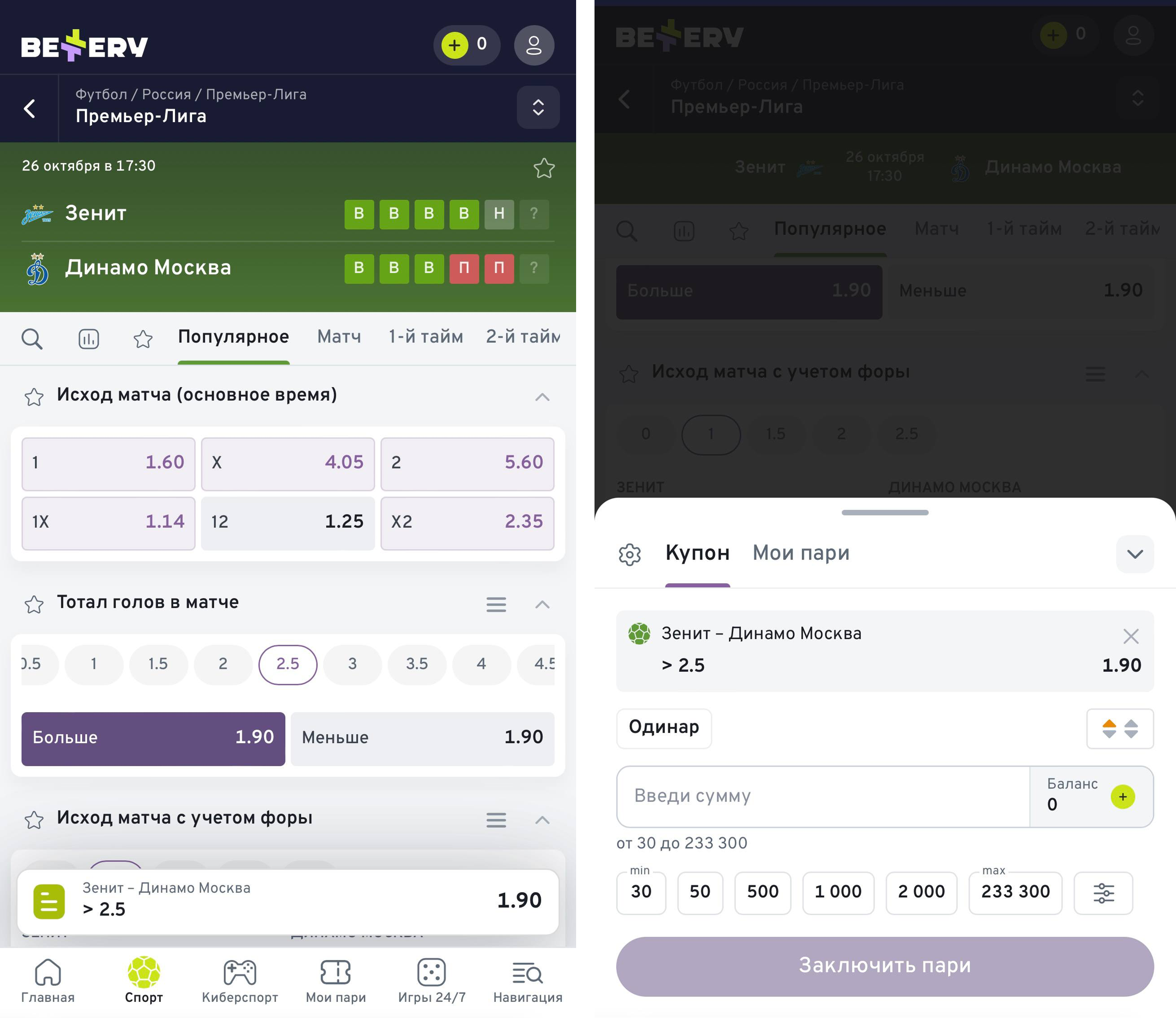 Как делать ставки через мобильную версию Bettery