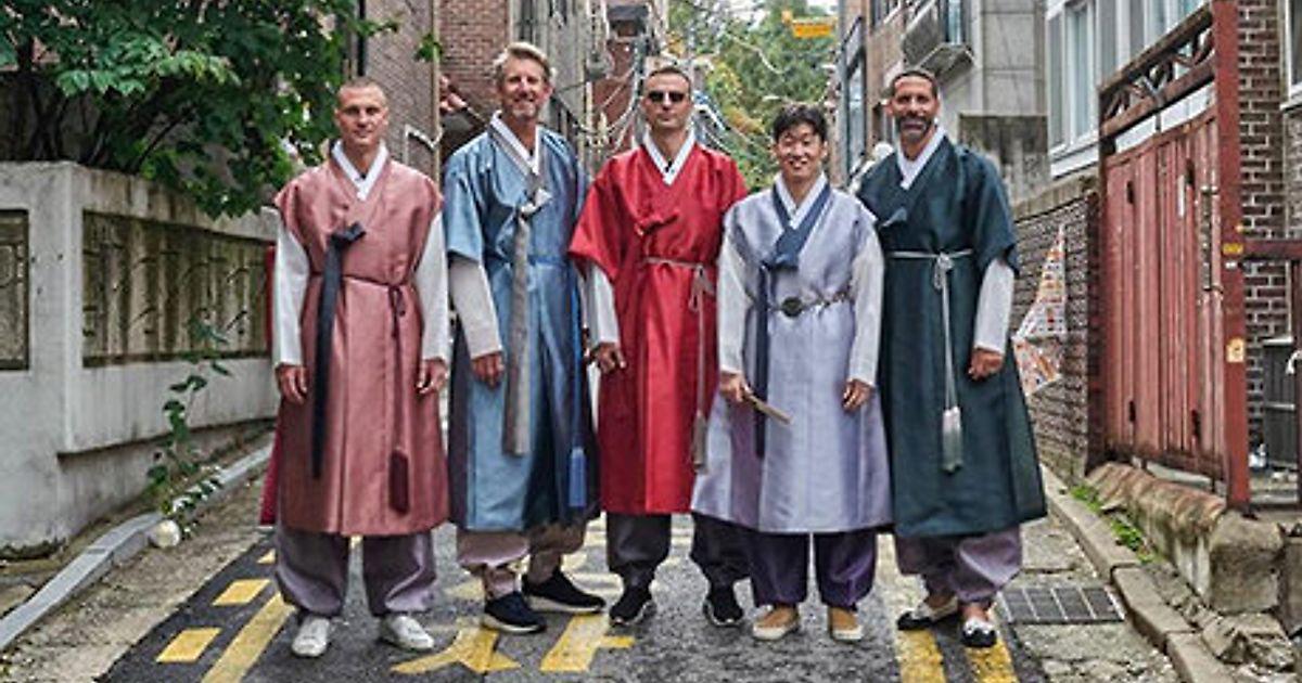 А бывшие звезды «МЮ» Эдвин ван дер Сар, Рио Фердинанд, Неманя Видич и Димитар Бербатов посетили местный магазин, где примерили на себя национальный костюм – ханбок.