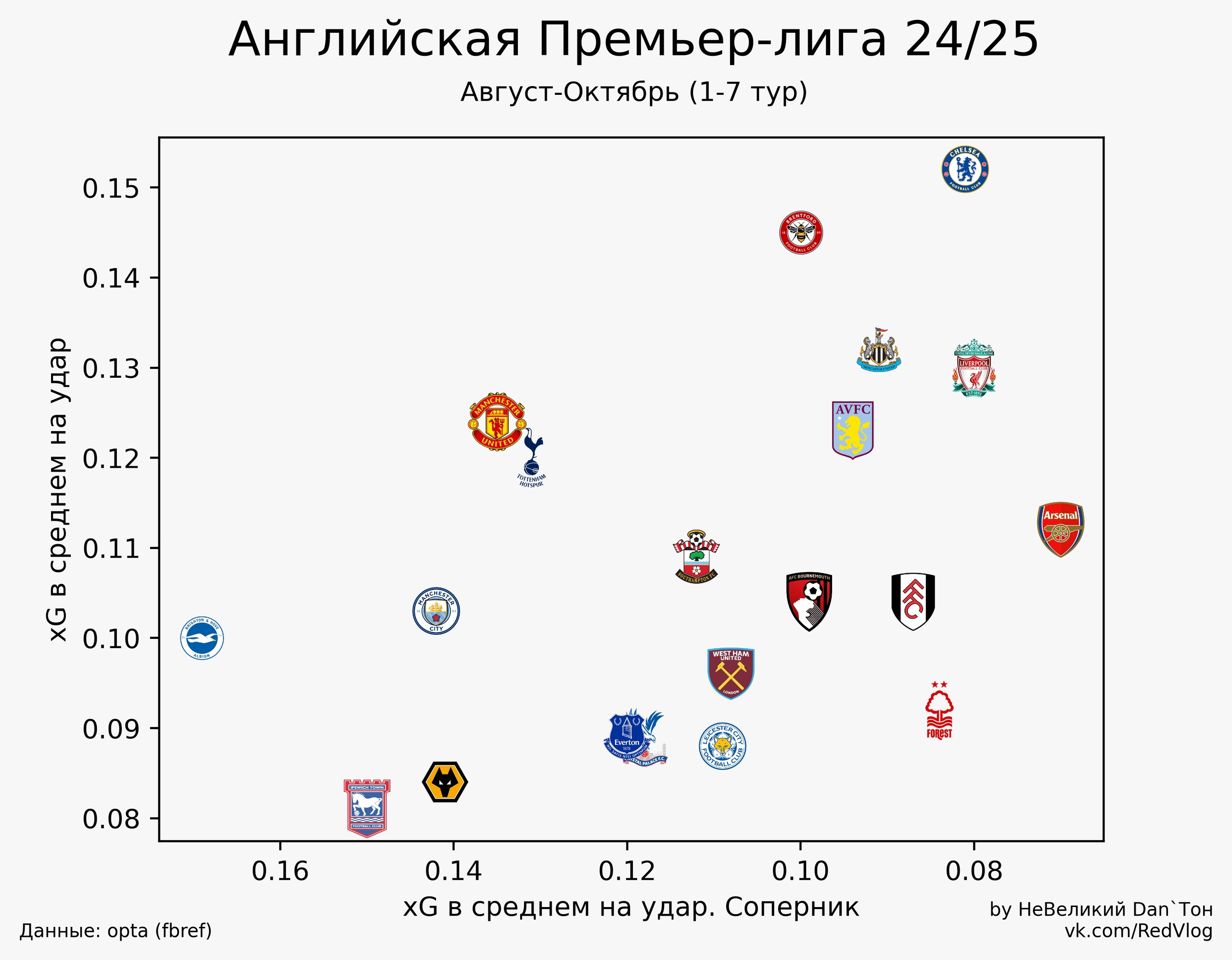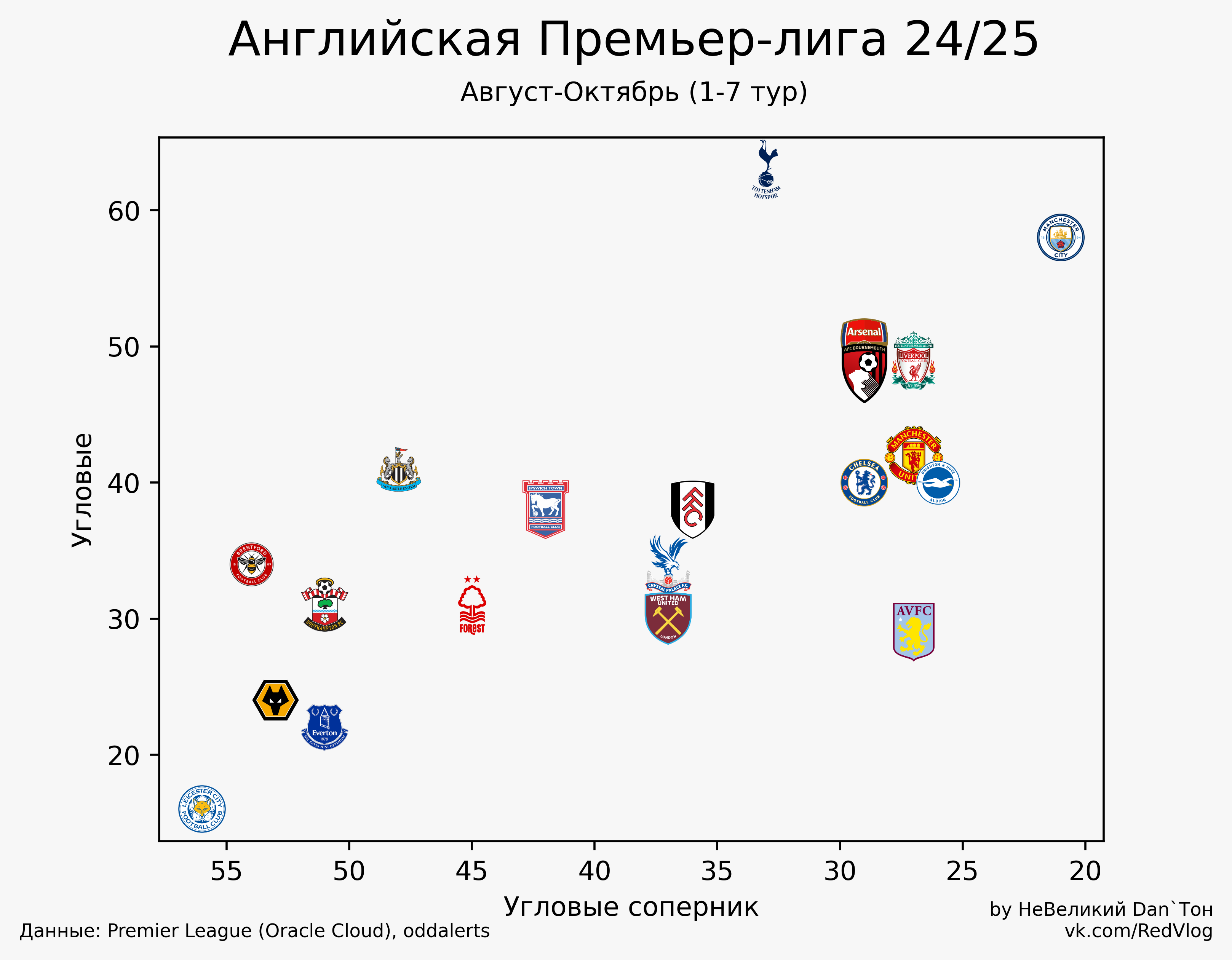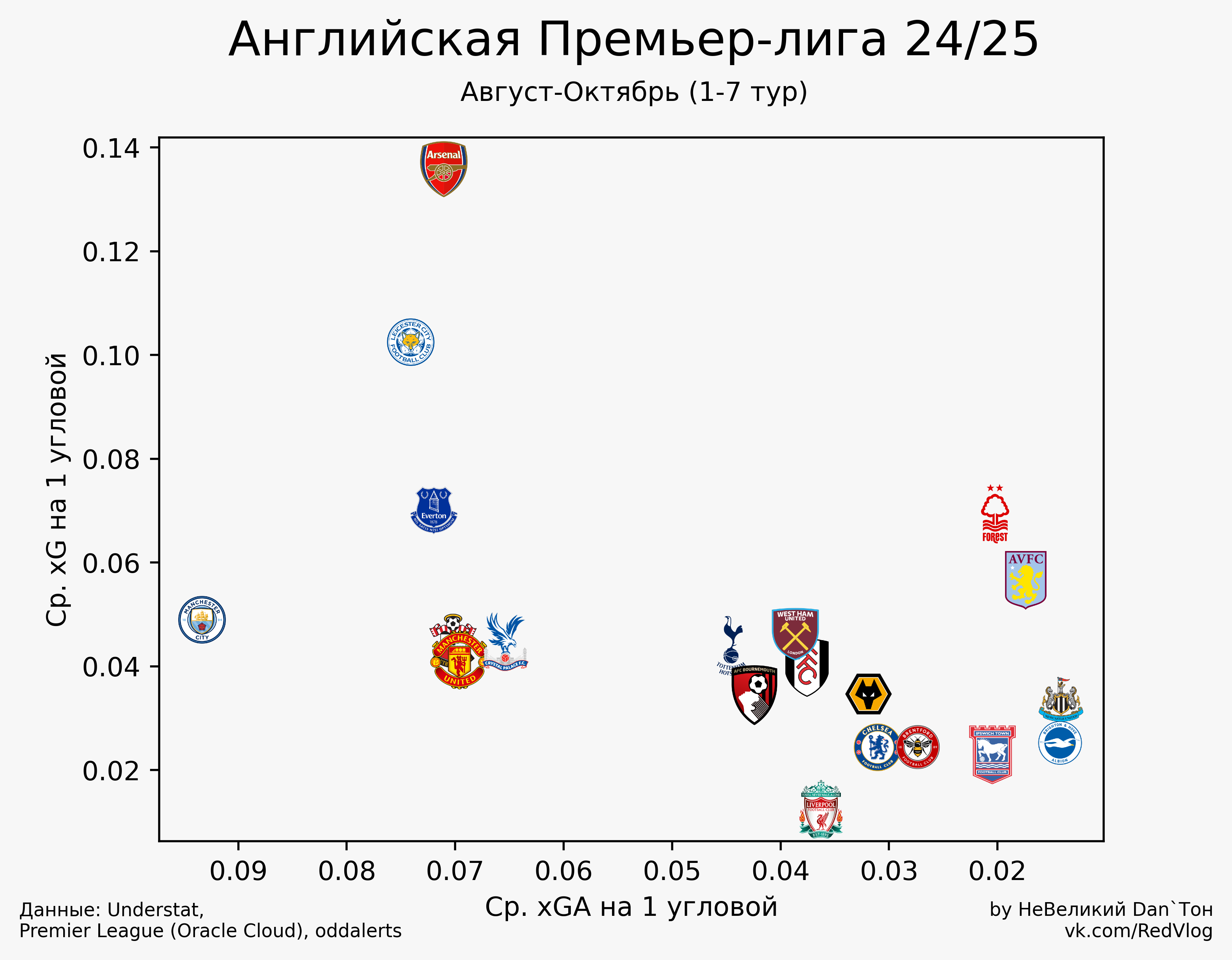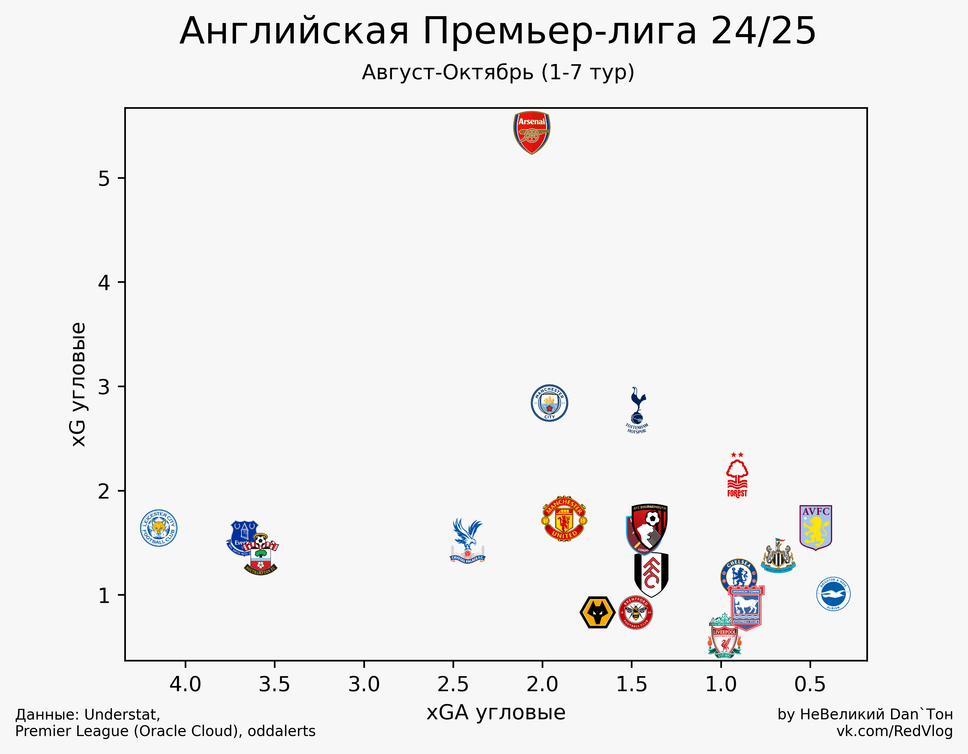 Статистика АПЛ за первые 7 туров: XG, Big Chances, угловые