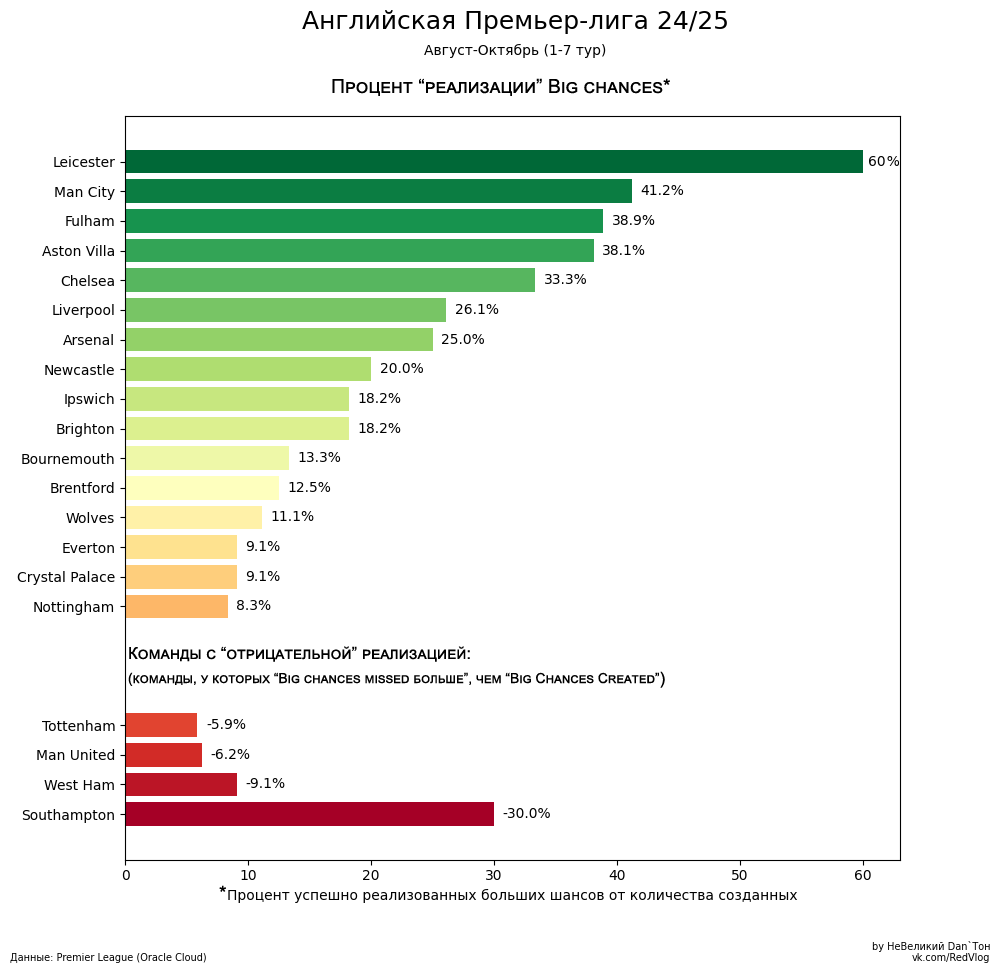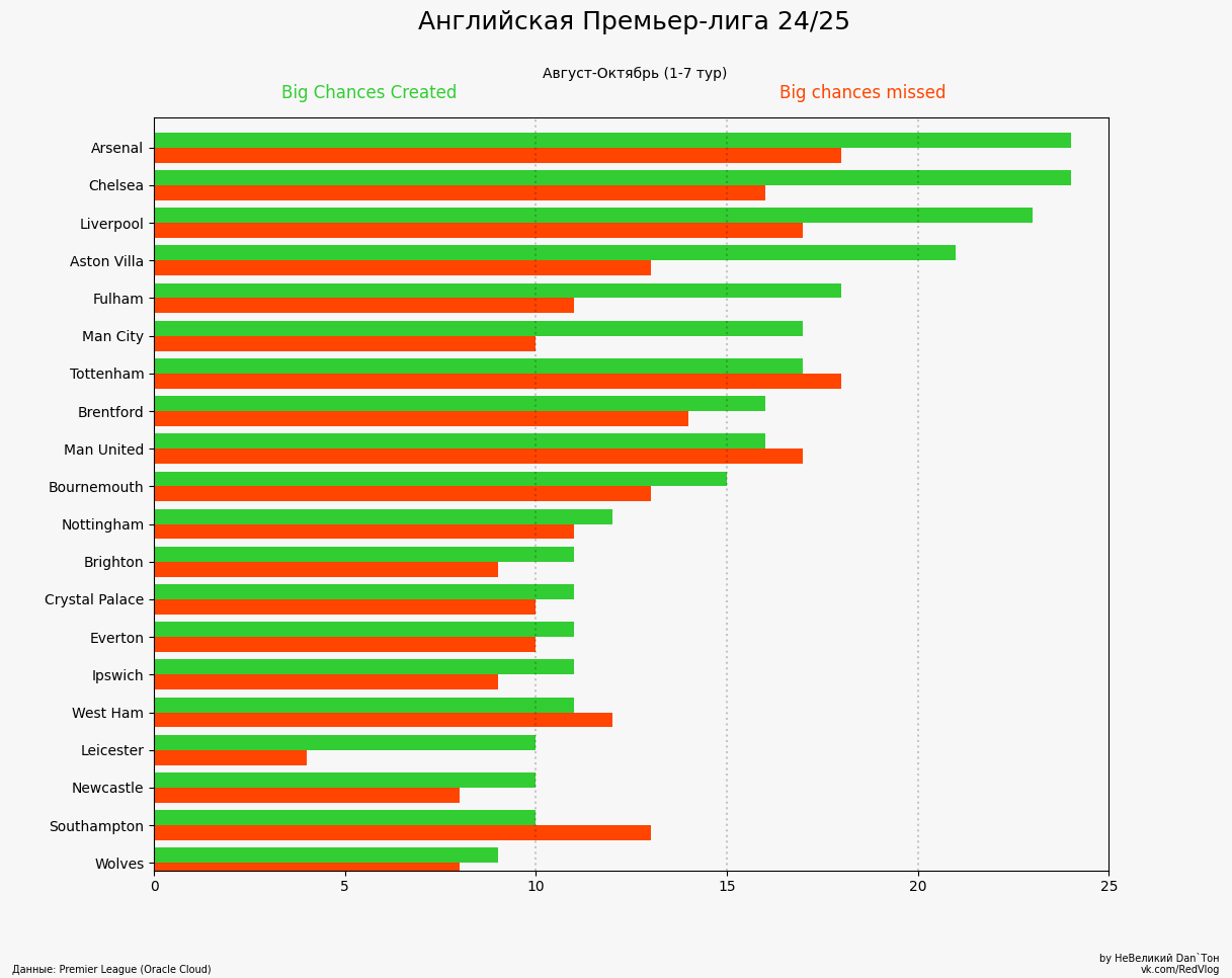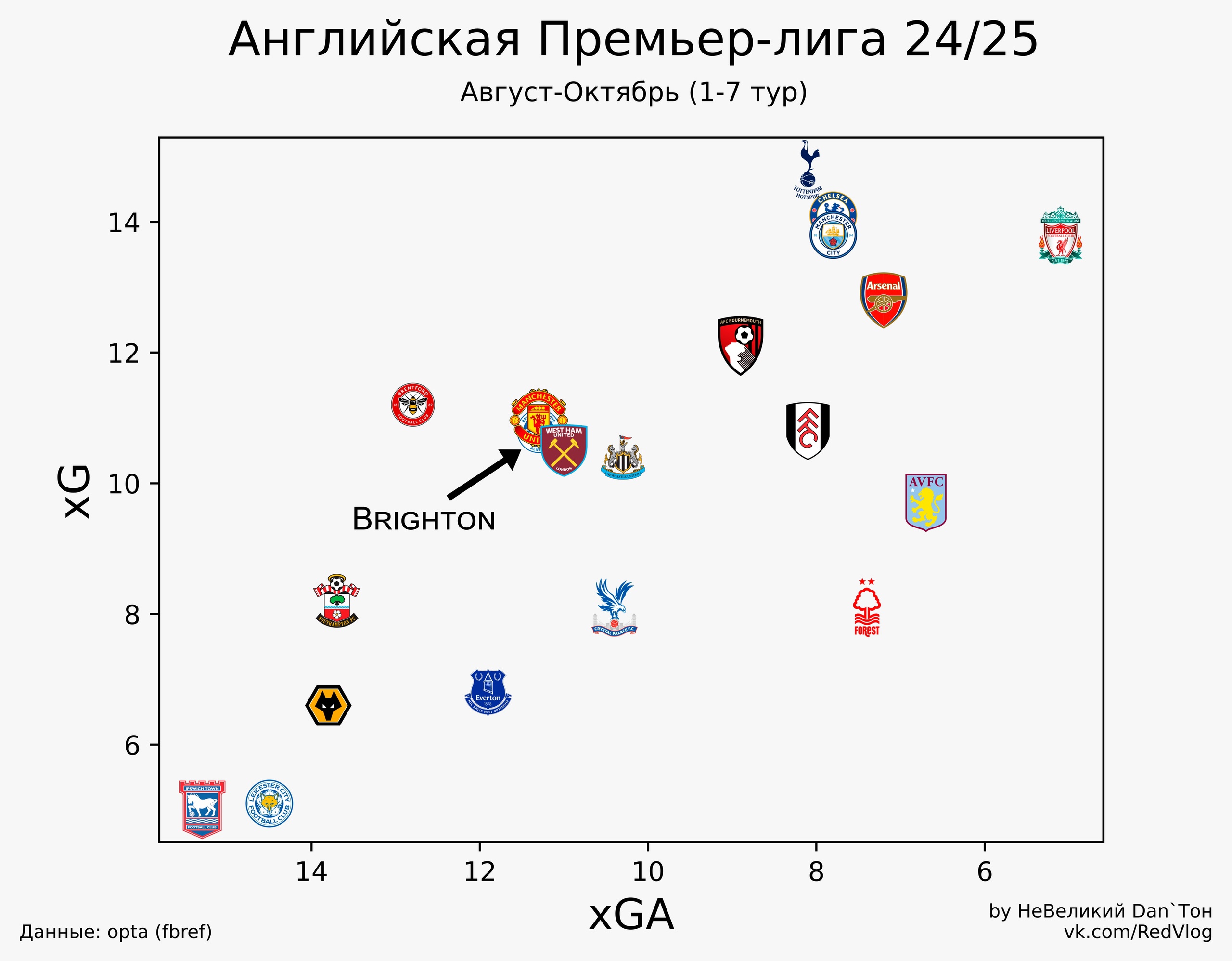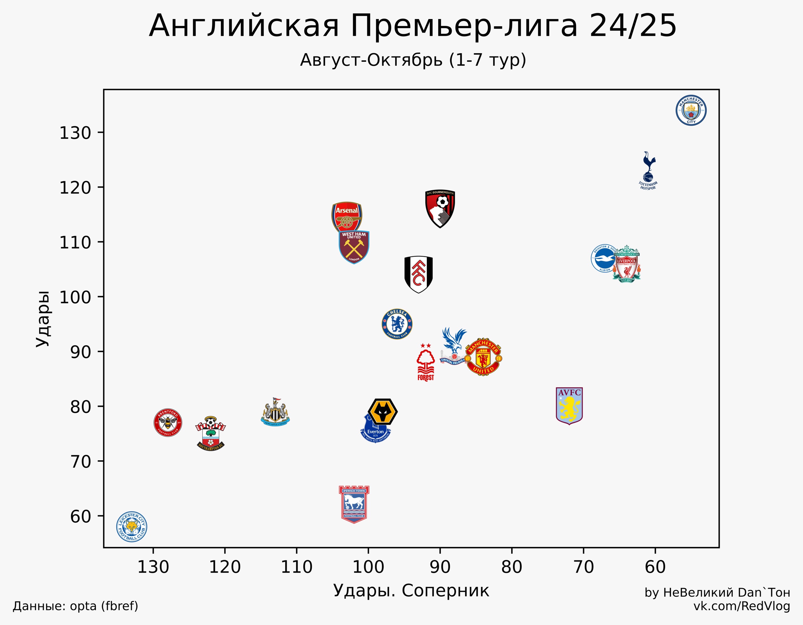Статистика АПЛ за первые 7 туров: XG, Big Chances, угловые
