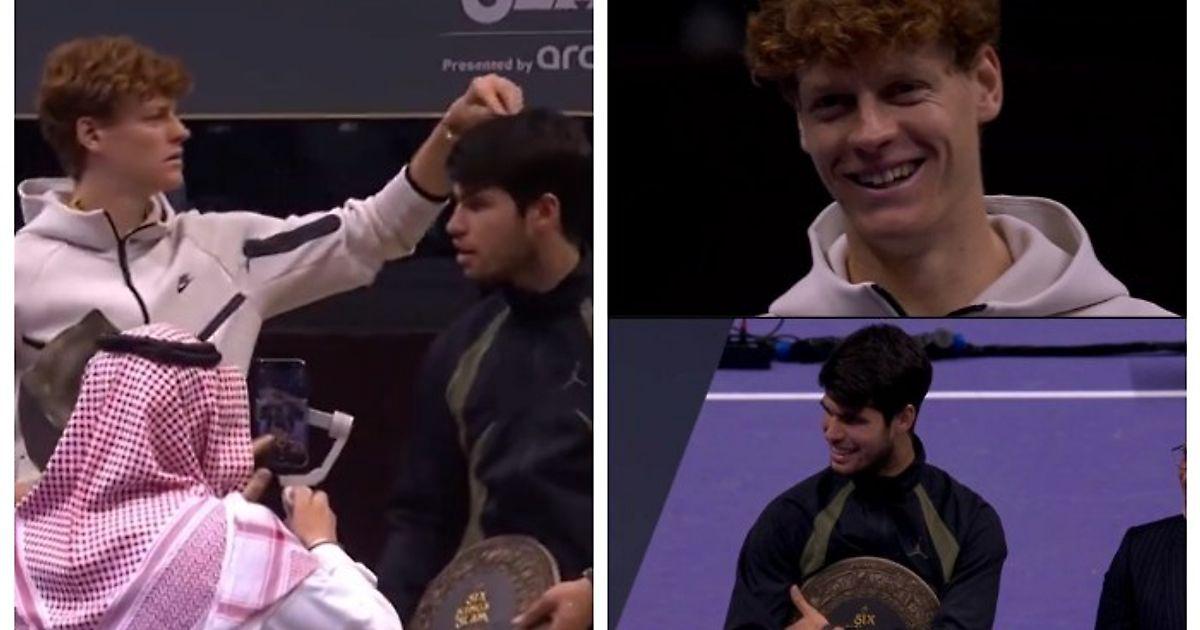 В сети завирусилось видео: итальянец только что одолел испанца в финале выставочного турнира «Шлем шести королей» в Эр-Рияде с рекордными призовыми в 6 млн долларов, вот они стоят на подиуме для финалистов. Янник поправляет Карлосу прическу, чтобы у испанца было более удачное фото с трофеем.