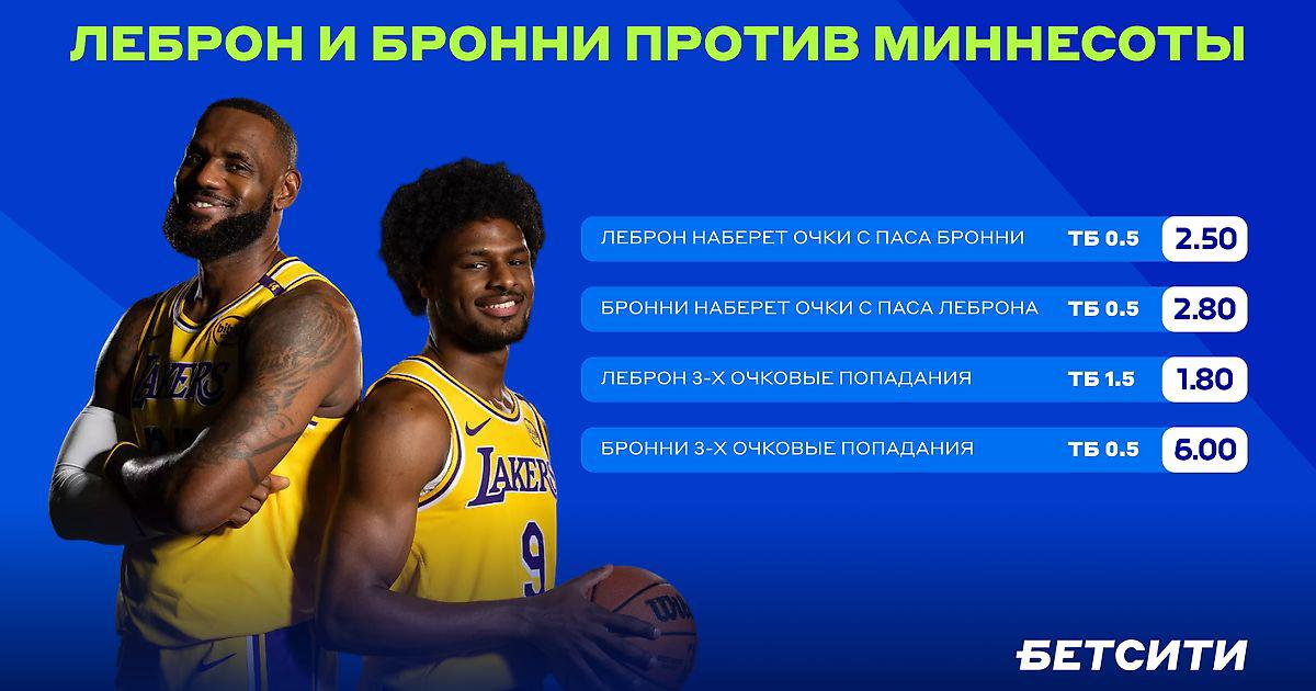 Отец наберет очки с паса сына или наоборот? Сколько 3-х очковых положит Леброн, а сколько Бронни? Заряжай на эти и другие ставки прямо сейчас по нашей линии!