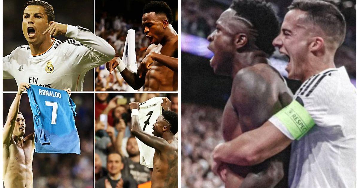 Винисиус оформил первый хет-трик в Лиге чемпионов (во втором тайме положил три мяча «Дортмунду»), во время празднования снял футболку и кричал «Я здесь!», как это делал Криштиану. А потом еще показал майку трибунам – Роналду так тоже делал.