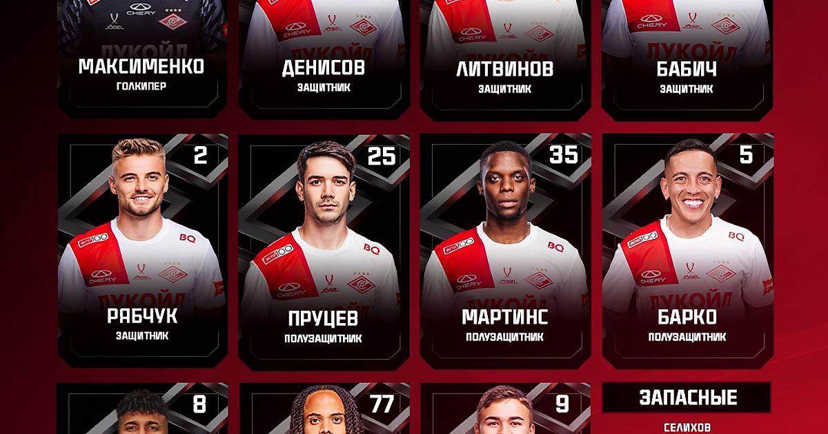 Запасные: Селихов, Дуарте, Абена, Хлусевич, Мангаш, Зобнин, Зорин, Игнатов, Медина, Зиньковский, Николсон, Виллиан Жозе.