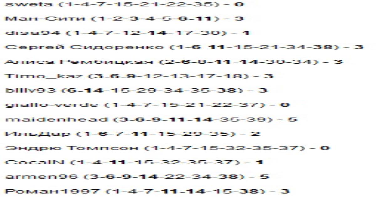Сыграли варианты: 3-6-9-11-14-20-24-33-38 (9)