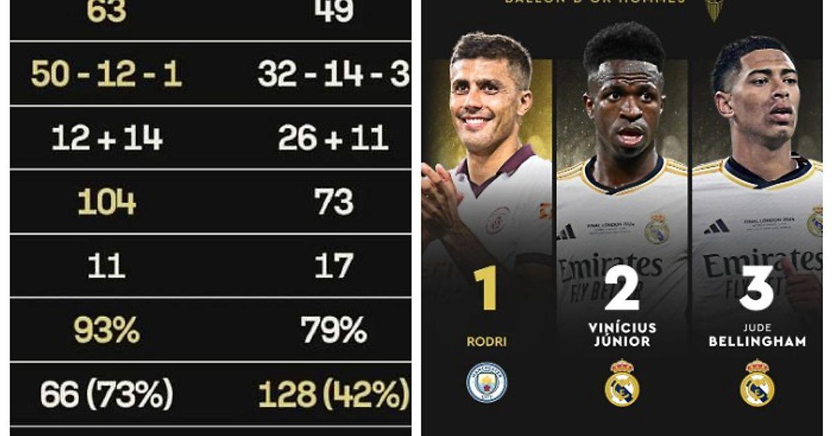 Справедливо ли выбран обладатель «Золотого мяча»🏆? Сравниваем статистику Родри, Вини и Джуда