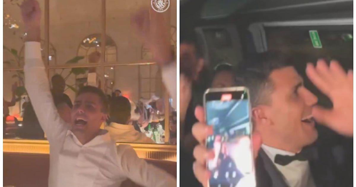 Уже после официальной части Родри вместе со своим окружением и представителями «Манчестер Сити» отправился праздновать. Уже по дороге в ресторан компания зажгла в автобусе, исполнив Rodri is on fire (перепевка GALA − Freed from Desire), а сам испанец заметно расслабился.