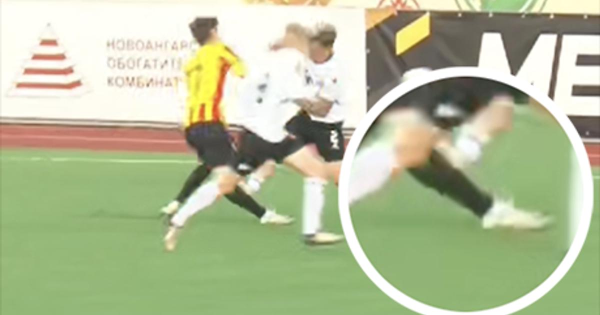 Это фол Данила Пелиха на владикавказце Давиде Кокоеве. На 70-й минуте игрок «Чайки» влетел прямой ногой в колено соперника.