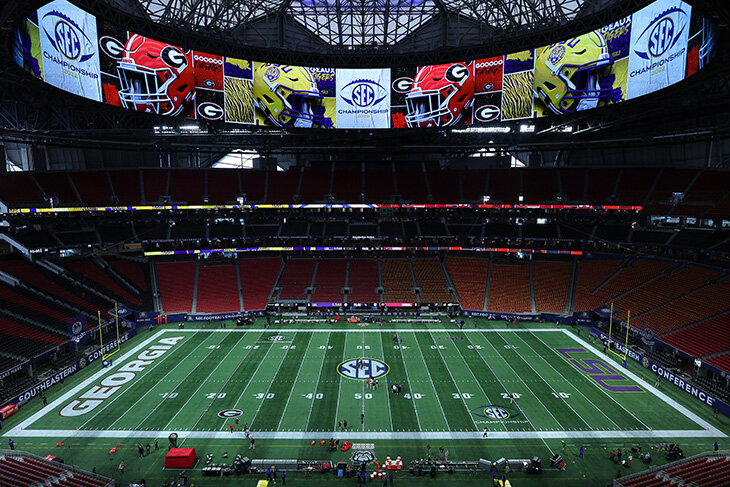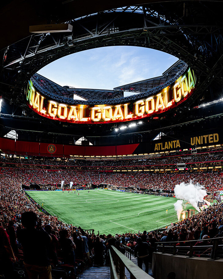 Арена на 71 тысячу зрителей обошлась в 1,6 миллиарда долларов и выглядит как строение из 22 века — с раздвижной крышей-цветком, тысячами экранов и сотнями кафе. Обычно здесь играют «Атланта Фэлконс» из НФЛ и «Атланта Юнайтед» Алексея Миранчука из МЛС.