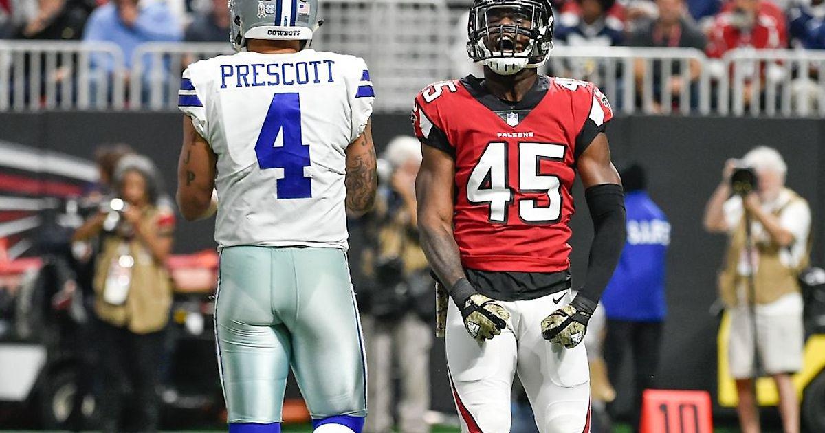 Каким же эффектным получился перехват Джесси Бейтса в игре с «Тампой» на прошлой неделе! Это начало хорошей серии для сейфти «Атланты», потому что предстоит игра против «Далласа». Дак Прескотт уже бросил 8 перехватов и зациклен на бросках в сторону Сиди Лэмба. «Сиди, сам открою», — скажет Бейтс и заберёт мяч.
