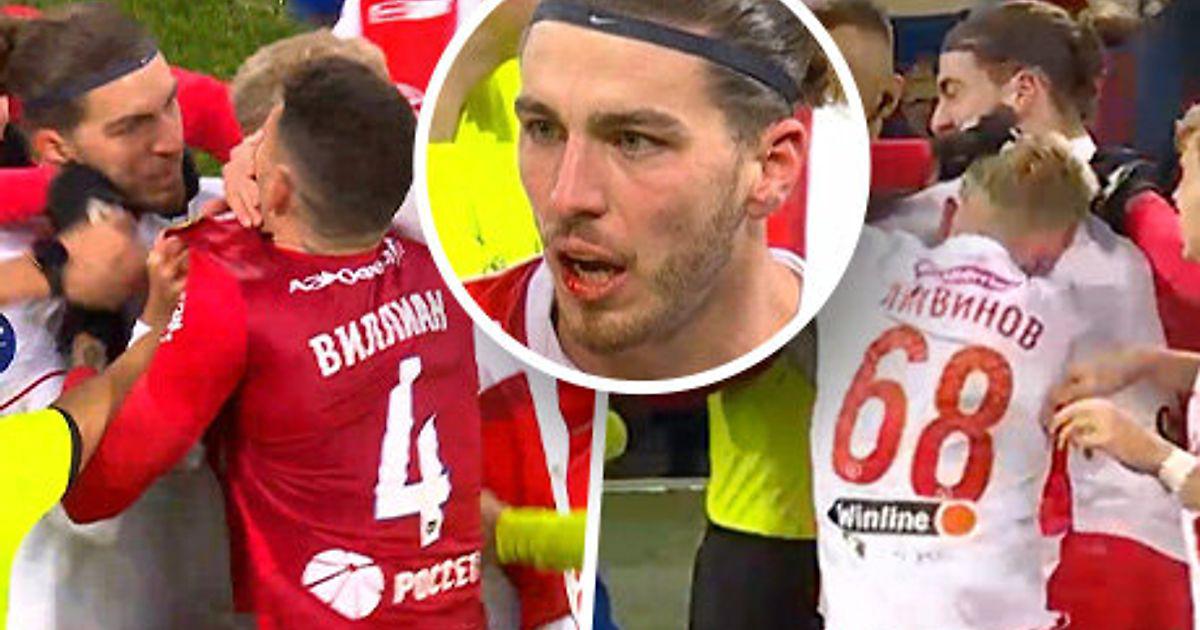 Как подрались: началось с подката, Роша махнул по двоим, ВАР удалил спартаковца вдобавок