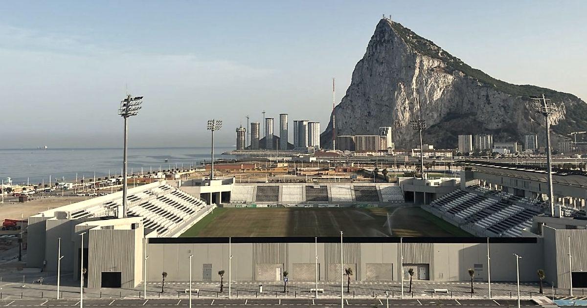 Аудитория домашних матчей не ограничивается болельщиками на трибунах. Подглядывать за происходящим на поле можно с вершины той самой скалы в Гибралтаре. На фото ниже вид на Ла Линеа со скалы. В левом нижнем углу – аэропорт Гибралтара, сразу за ним нейтральная полоса между странами, а правее – спортивный городок с модернизированным в 2024 году Estadio Municipal de La Línea, теперь вмещающим 9 тысяч зрителей.