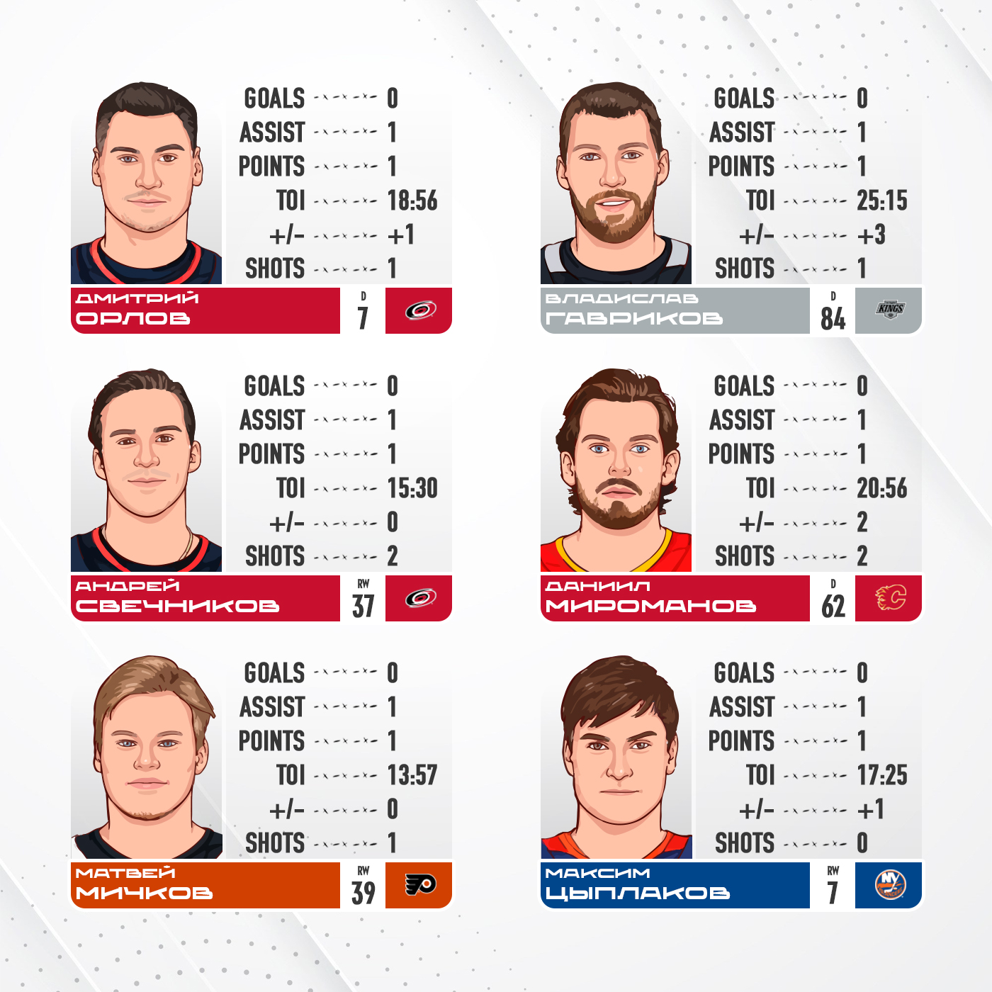 НХЛ: статистика российских игроков в картинках от 06.11.24