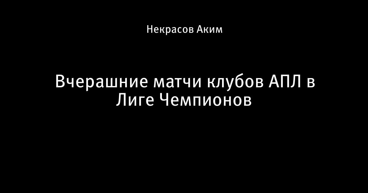 Хотел бы обсудить с вами вчерашние матчи клубов АПЛ в Лиге Чемпионов.