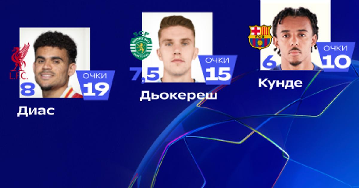 Это самые эффективные игроки 4-го тура в фэнтези ЛЧ на Спортсе. Сборная составлена так: