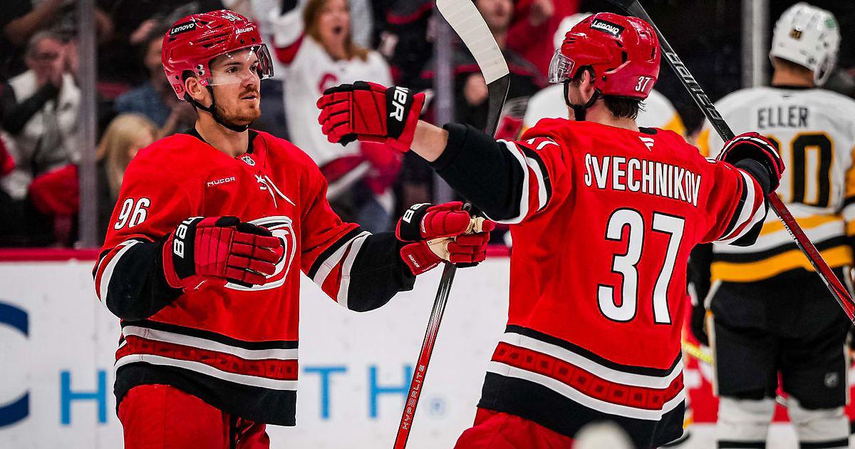 «Каролина Харрикейнз»-»Питтсбург Пингвинз» 5:1. Джек Рослович набрал 3 очка (2+1), Джейлен Чэтфилд отдал 3 результативные передачи, Себастьян Ахо отдал 2 результативные передачи, Андрей Свечников и Дмитрий Орлов отдали по результативной передаче, Пётр Кочетков отразил 35 бросков. «Ураганы» выиграли 8 игру подряд.