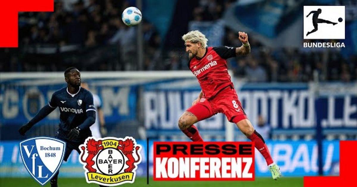 «Добро пожаловать на пресс-конференцию после матча десятого тура Бундеслиги между «Бохумом» и «Байером» из Леверкузена. Итоговый счет 1:1. Приветствую всех присутствующих здесь представителей СМИ, а также обоих главных тренеров - Дитера Хеккинга и Хаби Алонсо! По традиции передаю слово нашему гостю! Хаби Алонсо, пожалуйста, прокомментируйте сегодняшнюю игру!».