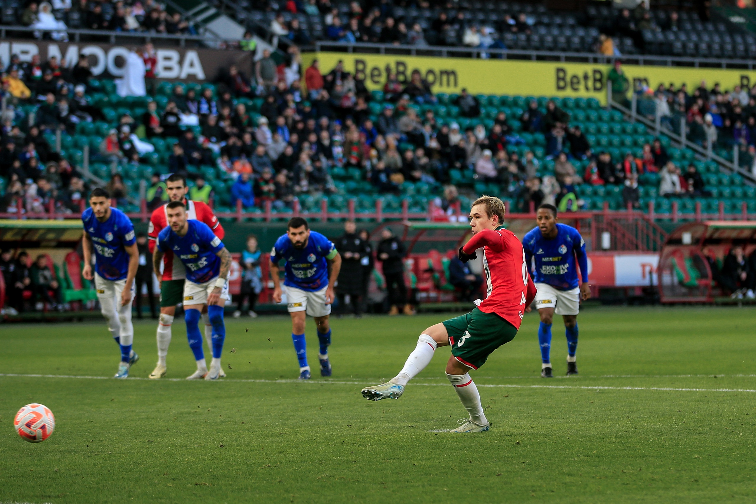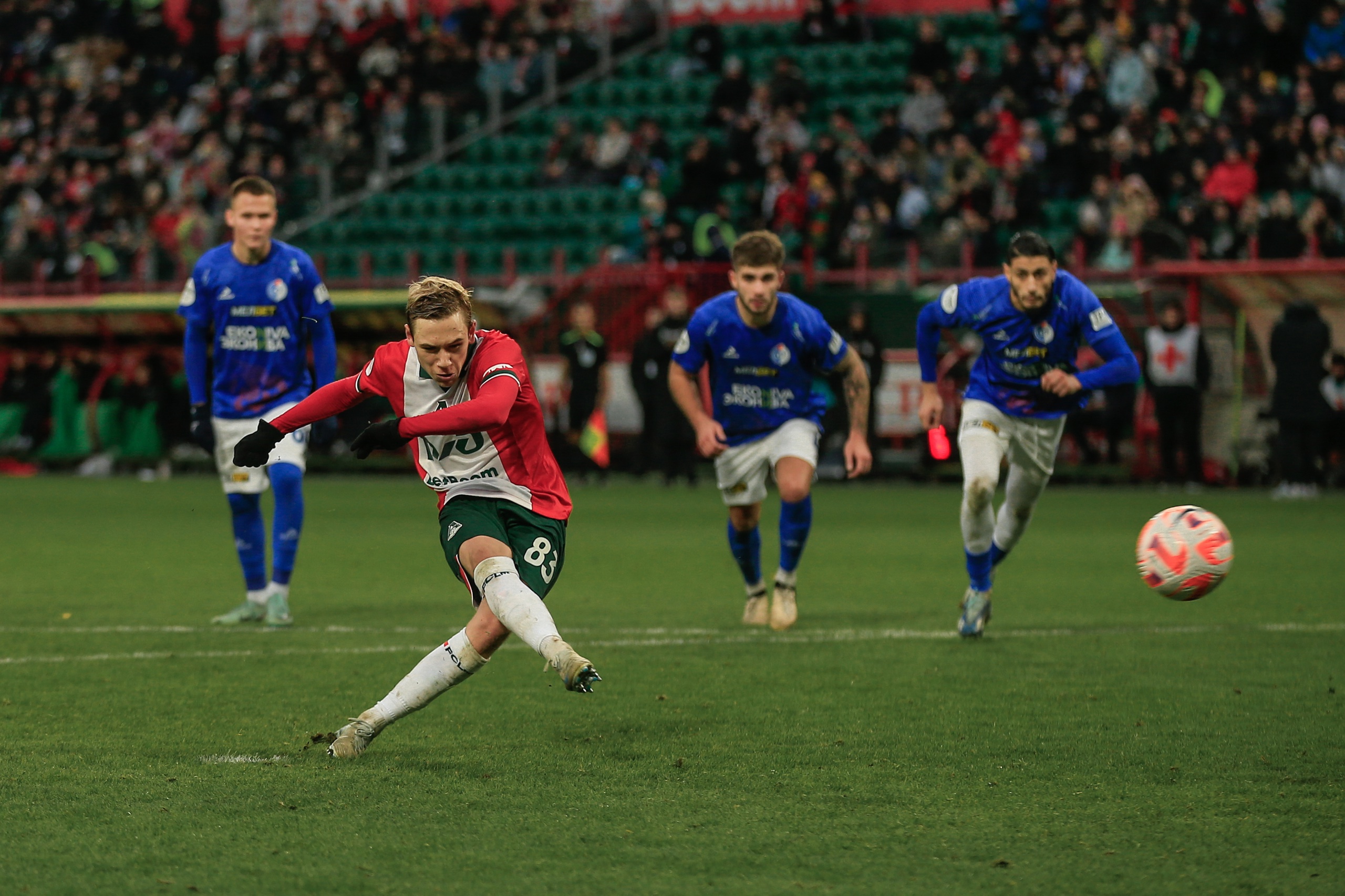 Батраков забивает с пенальти. Красота гостевого сектора. Фото с матча «Локомотив» — «Факел»