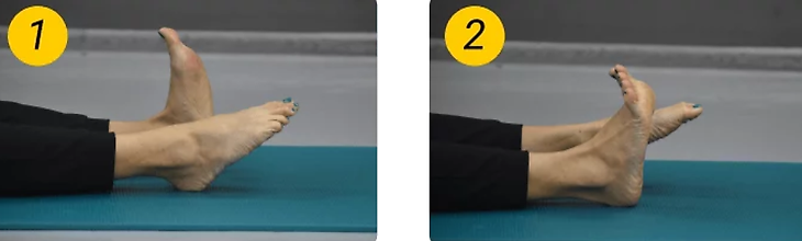 Сядьте на пол, выпрямив ноги перед собой. Вытяните стопы, направив пальцы вперед, как это делают балерины. Затем плавно подтяните стопу на себя, напрягая мышцы голени. Выполняйте упражнение поочередно каждой ногой или обеими ногами одновременно. Рекомендуется сделать 10-12 повторений. Это упражнение способствует укреплению мышц передней поверхности голени, а также повышению эластичности связок и сухожилий стопы.