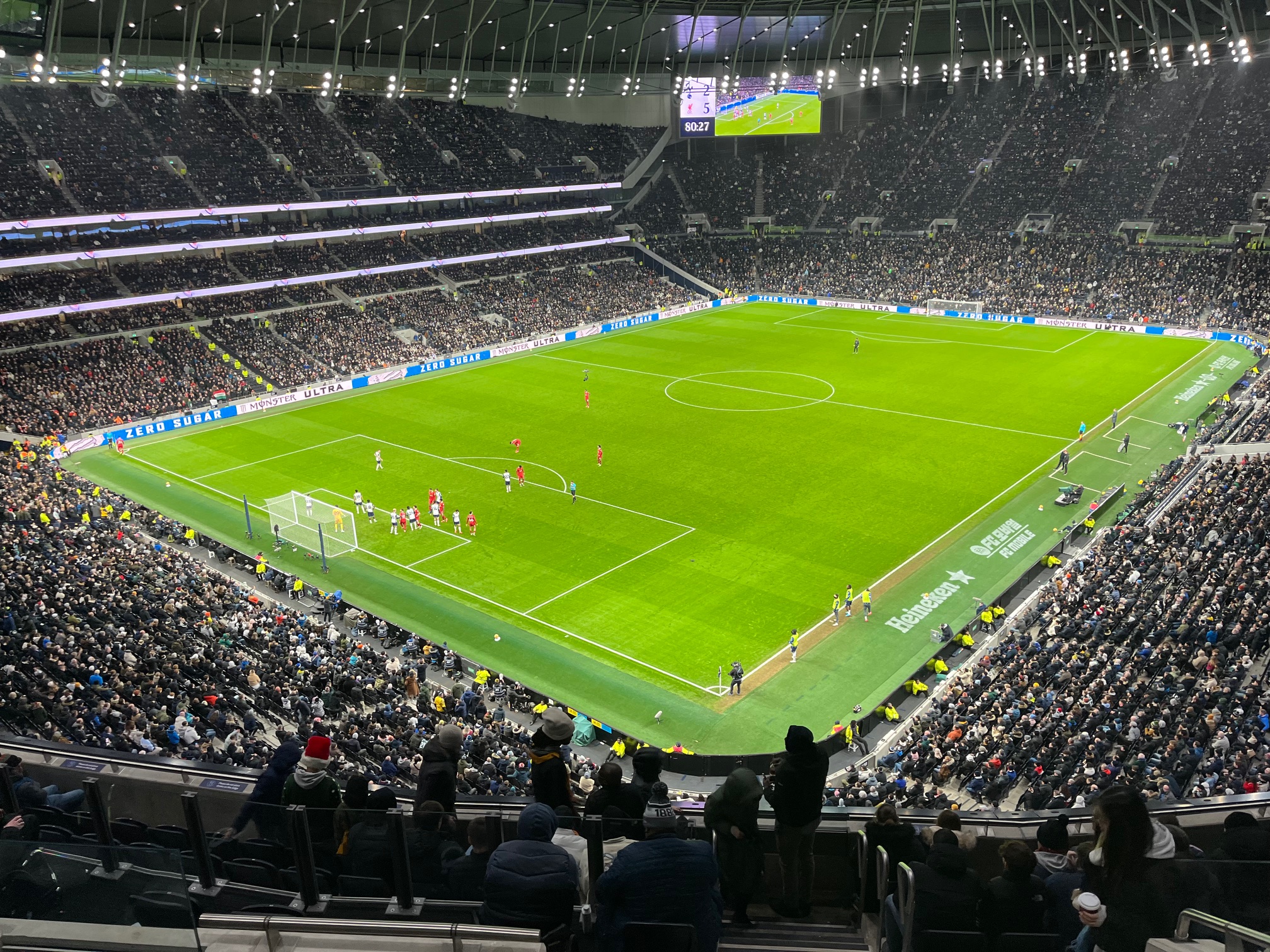 Плюсы: Суперсовременная арена, отличный вид с любого места, огромное количество точек по продаже еды и туалетов. Внутри подтрибунных помещений возникает ощущение, что ты находишься не на футбольном стадионе, а в дорогом отеле или аэропорту. А потом ты выходишь оттуда на свой ярус – и захватывает дух. И да, с атмосферой тут все в порядке – я знаком с несколькими болельщиками «шпор» со стажем, и ни от кого из них я не слышал ностальгии по старой арене. Поэтому что это лучший стадион не только в Лондоне, но и во всей Англии.
