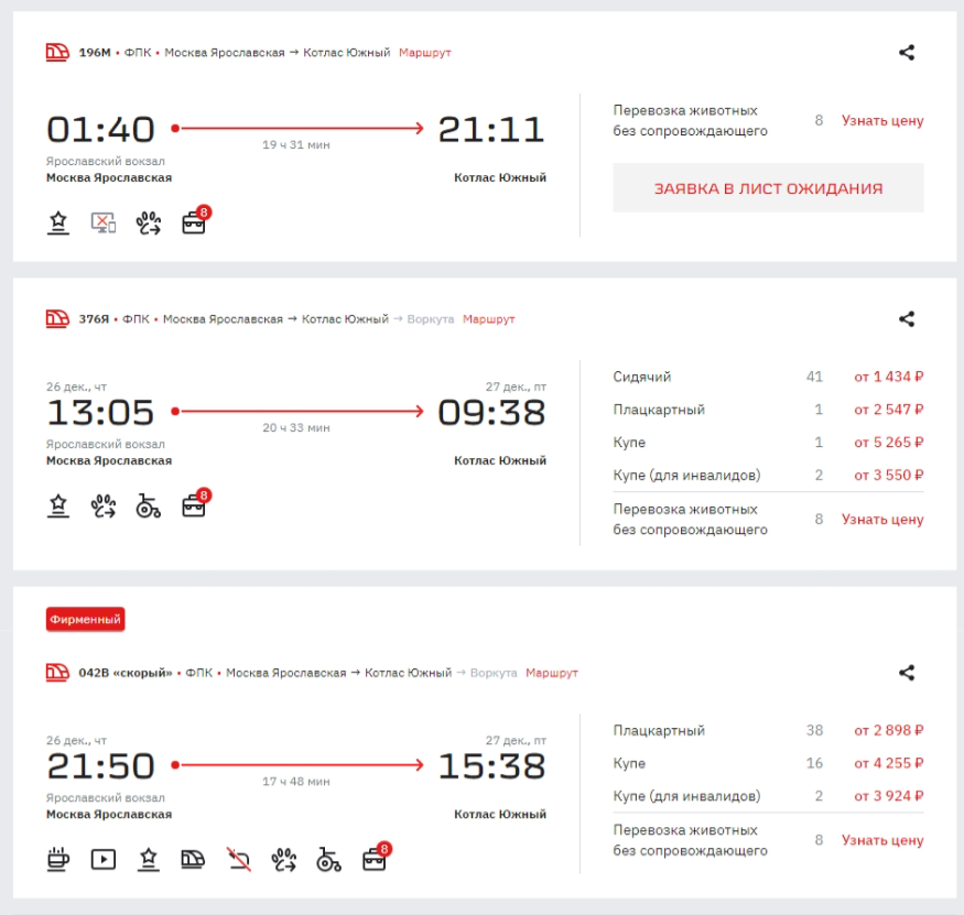 Стоимость поездки в плацкартном вагоне от 2 500 рублей. В купе – от 4 200 рублей. Если вы готовы к поездке в совсем уж тяжелых условиях, то можно за 1 400 рублей добраться до Котласа в сидячем вагоне. Правда сидеть придется более 20 часов – вариант достаточно экстремальный.