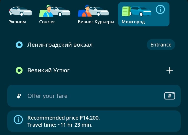 Однако далеко не все операторы согласятся на такой переезд: рекомендуем обратить внимание на тех перевозчиков, кто специализируется на поездках межгородом. Так, например, в сервисе Drivee рекомендуемая цена на такую поездку составляет 14 200 рублей. У Яндекса поездок до Великого Устюга пока что не предусмотрено, но возможно ситуация изменится в ближайшие месяцы.
