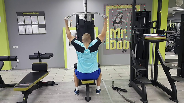 Базовое упражнение в силовом тренинге, направленное на развитие мышц спины. Выполняется на специальном тренажере с отягощением, что позволяет контролировать нагрузку и амплитуду движения. В движении участвуют широчайшие мышцы спины, трапециевидные мышцы, ромбовидные мышцы, задние дельтовидные мышцы, а также бицепсы и мышцы предплечья. Степень вовлечения каждой мышечной группы зависит от выбранного хвата (широкий, узкий, прямой, обратный) и направления движения (к груди, за голову).