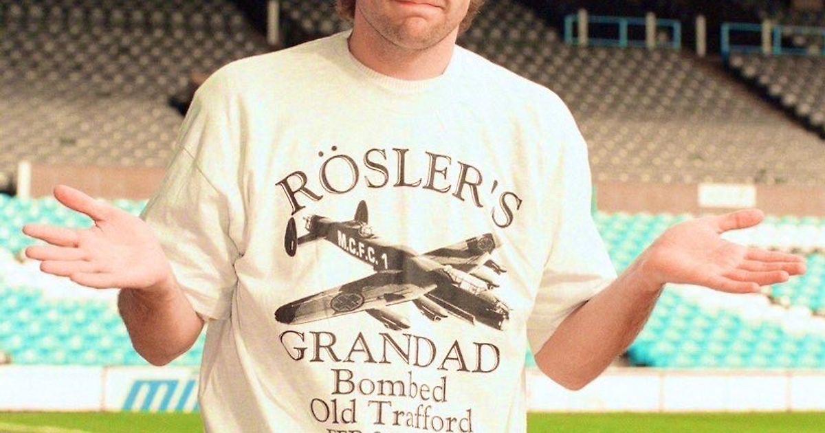 Эта надпись отсылает к шутливой песне, которую болельщики «Сити» исполняли на трибунах во времена выступлений Рёслера за клуб. Слова песни, несмотря на свою абсурдность, были посвящены случаю из времён Второй мировой войны, когда трибуна «Stretford End» на стадионе «Олд Траффорд», домашней арене «Манчестер Юнайтед», пострадала во время налета Люфтваффе.