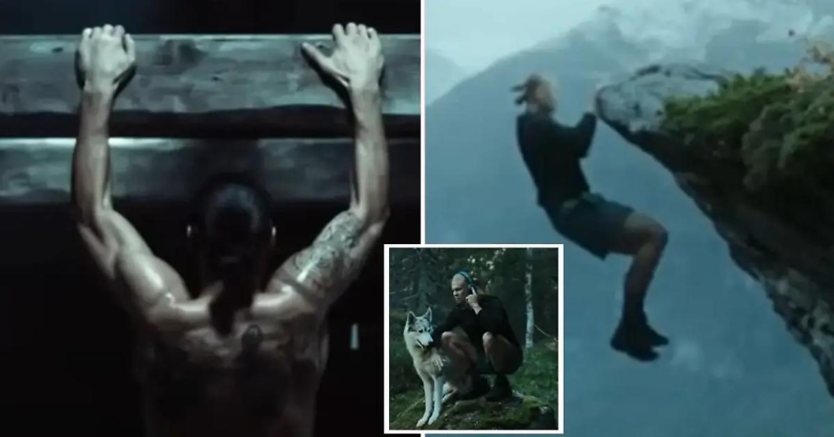 Швед тогда тоже бегал по лесам и подтягивался на краю скалы, но тогда это была реклама автомобиля Volvo.