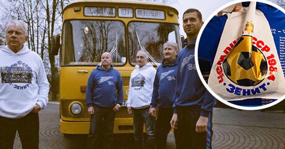 Для начала выпустил специальную коллекцию одежды, посвященную первому чемпионству. В линейку вошли футболки и толстовки синей и белой расцветки (голубой в 84-м еще не относился к клубным цветам). Кстати, «Зенит» оригинально представил новую коллекцию – собрал чемпионов 1984 года, позвал легенд нынешнего состава Александра Ерохина и Михаила Кержакова, посадил их в ретро-автобус ЛиАЗ-677М и сделал атмосферную фотосессию.
