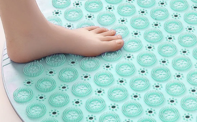 Такой коврик обеспечит расслабляющий эффект после приема водных процедур и поможет снять напряжение в ногах. Он не будет скользить по поверхности пола в ванной и добавит свежести в интерьер.