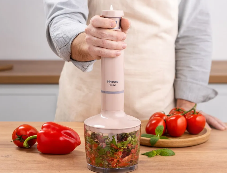 С его помощью можно быстро измельчить овощи, орехи, зелень, мясо и другие твердые пищевые продукты. А также приготовить крем-суп, пюре, майонез, взбить смузи, жидкое тесто.