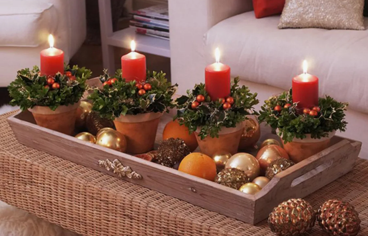 Снежный шар с подсветкой, яркие елочные игрушки, оригинальные подсвечники, хвойные венки, набор свечей — создадут уютную атмосферу праздника.
