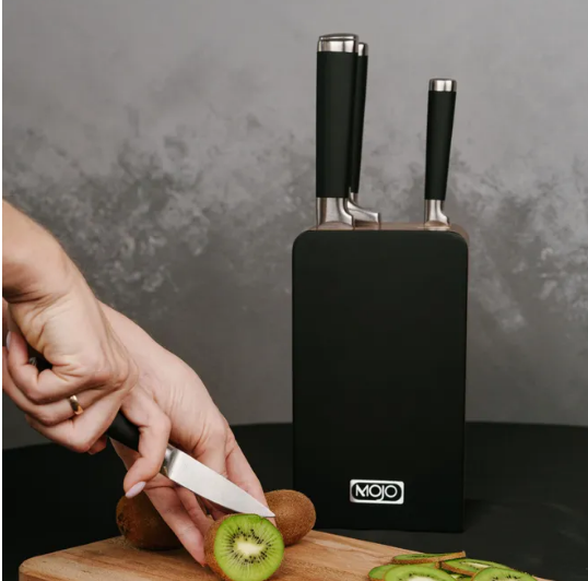 В таком наборе ножи используются для различного применения: поварской, разделочный, хлебный, овощной, универсальный. А в стильной и надежной подставке они будут бережно храниться и украсят кухонный интерьер.